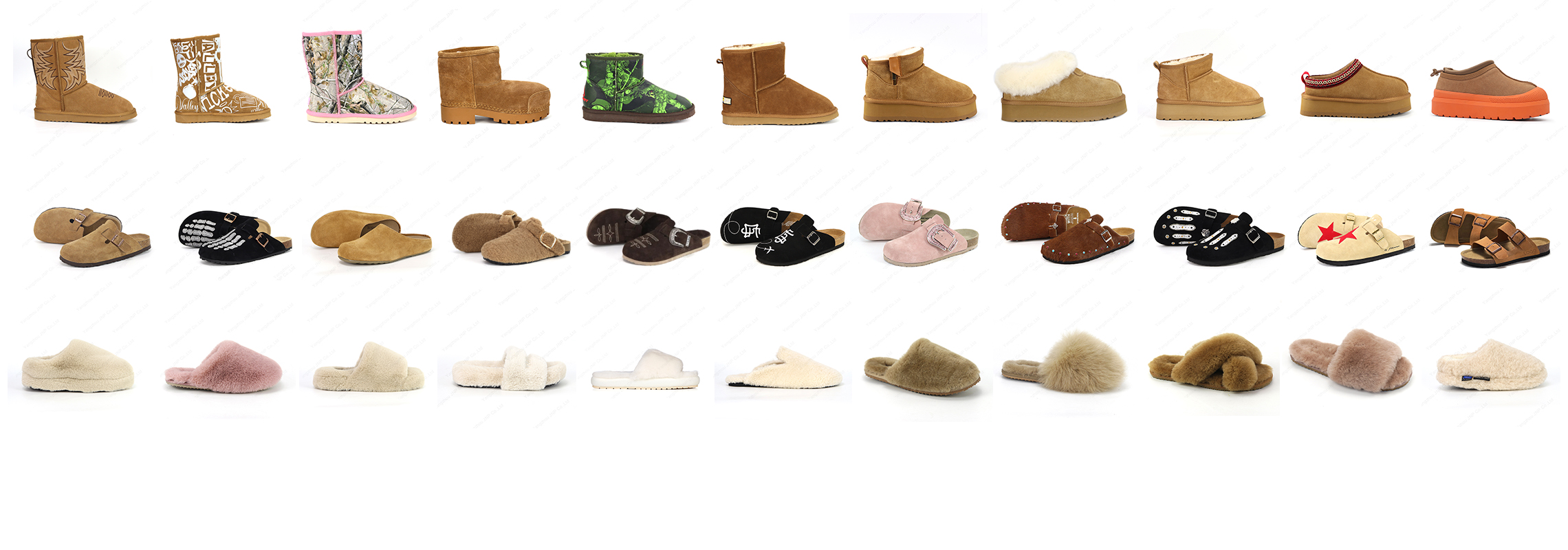 Step into our sample room and discover the possibilities! Explore the styles and designs we can create for your brand. From wool slippers to summer sandals, the possibilities are endless.